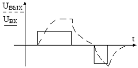 Частотная характеристика и временные зависимости входного и выходного напряжений представлены на рисунке 3.62б, в, соответственно.