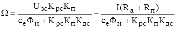 (Uзс – кдс×W)×крс×кп = се×Фн×W + I×(Ra + Rп);