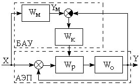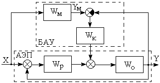 Передаточная функция такой замкнутой системы независимо от изменения параметров объекта стремится к передаточной функции модели, поэтому переходные процессы по управляющему воздействию Х будут оптимальными и стабилизированными, т.е. не будут изменяться при изменении параметров объекта. Такую сигнальную настройку применяют в системах АВК для сохранения оптимальной настройки в контуре тока при изменении скорости.