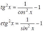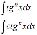 (n – целое число, большее 1) выделим множитель tg 2 x в первом случае и ctg 2 x – во втором случае и будем использовать формулы: