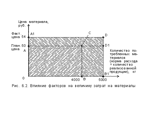 "Рис.6.2 Влияние факторов на величину затрат на материалы"