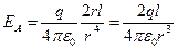 Рассчитаем напряженность поля на продолжении оси диполя в точке А.