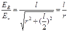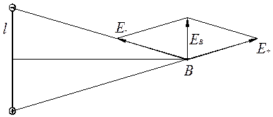 Рассчитаем напряженность поля на перпендикуляре, восстановленном к оси из его середины, в точке В.