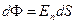 Потоком напряженности электрического поля сквозь малый участок поверхности, проведенный в поле, называется величина