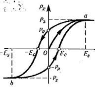| С увеличением напряженности , поляризованность образца увеличивается до насыщения , при дальнейшем уменьшении до нуля поляризованность уменьшается до значения -называемого остаточной поляризованностью. Поляризация образца исчезает полностью лишь под действием электрического поля противоположного направления . Величина .называется коэрцетивной силой.
