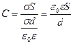 Емкостью конденсатора называется величина численно равная отношению заряда, накопленного на конденсаторе, к разности потенциалов между его обкладками,