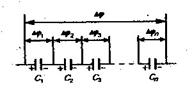 | При последовательном соединении конденсаторов в батарею заряды всех конденсаторов одинаковы и равны заряду батареи. Разность потенциалов батареи равна сумме разностей потенциалов на каждом конденсаторе.