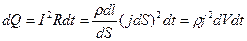 Количество теплоты, выделяющееся за единицу времени в единице объема, называется удельной тепловой мощностью тока. Она равна