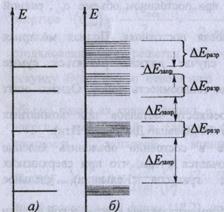 | изолированы, они имеют одинаковую схему энергетических уровней (см. рис.1а). По мере сжатия атомов до кристаллической решетки, то есть когда расстояния между атомами станут равными межатомным расстояниям в твердых телах, взаимодействия между атомами приводит к тому, что энергетические уровни смещаются, расщепляются и расширяются в зоны (см. рис.1б). Образуется зонный энергетический |