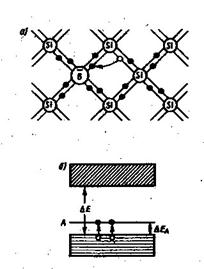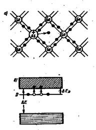 = 0,015 эВ. Энергия теплового движения даже при обычных температурах оказывается достаточной для того, чтобы перевести электрон с донорного уровня в зону проводимости (см. рис.3 и рис.5а).
