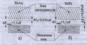 Введение примеси искажает поле решетки, что приводит к возникновению в запрещенной зоне энергетического уровня, называемого донорным. Этот уровень располагается от дна зоны на расстоянии для As