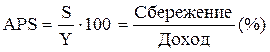 Средняя склонность к сбережению(APS) характеризует отношение объема сбережения к объему располагаемого дохода: