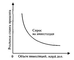 В принятии инвестиционных решений главную роль играет не номинальная, а реальная ставка процента. Связь между реальной ставкой процента и объемом инвестиций называется инвестиционной функцией. Она имеет убывающий характер: чем выше норма процентной ставки, тем ниже уровень инвестиций. Графически инвестиционная функция показана на рис. 3.3.