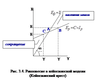 Модель «Кейнсианский крест» («Keynesian cross») графически представлена на рис.3.4.