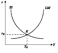 Ни кривая IS, ни кривая LM не определяют сами по себе величину равновесного дохода Yе и равновесной ставки процента rе. Равновесие в экономике определяется совместно кривыми IS и LM в точке их пересечения (рис. 4.3).