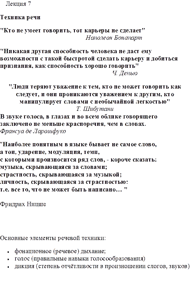 Умение владеть голосом важно не только для оратора, но для любого человека, профессия которого требует постоянного общения с людьми. В личном общении владение голосом также оказывается положительным качеством человека. Необходимыми качествами хорошего голоса являются: красивый тембр, сила, полетность, выносливость, большой диапазон.
