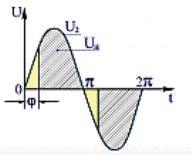 Рис. 7. Диаграмма напряжений: φ- угол (фаза) включения тиристоров.