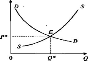 Многие учебники микроэкономики начинаются с анализ механизма спроса и предложения на товарном рынке, демонстрируя при этом модель рыночного равновесия, где предполагается, что спрос на товар D падает при увеличении цены Р, предложение товара S, наоборот, растет при увеличении цены (рис. 3.6). Пересечение обратных функций спроса и предложения Q D = D(P) и Q S = S(P) дает точку равновесия спроса и предложения Q* и цену равновесия Р*: