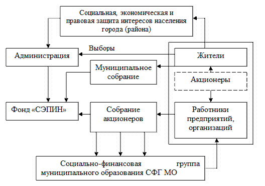Муниципальное образование как корпорация представляет по сути социально-финансовую группу. Главная функция СФГ МО обеспечение интересов населения, а главная задача корпоративного управления — организация оптимальных взаимоотношений участников.