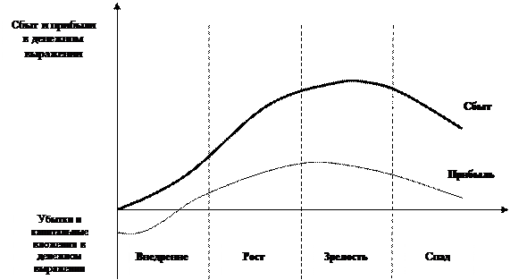 Рис. 6. Характер сбыта и прибыли на протяжении жизненного цикла товара