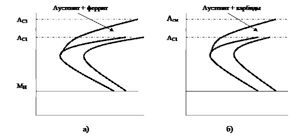 доэвтектоидной (а) и заэвтектоидной (б) сталях