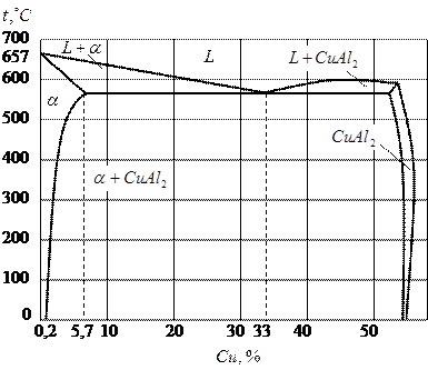 Рисунок 21 – Диаграмма состояния «алюминий – медь»