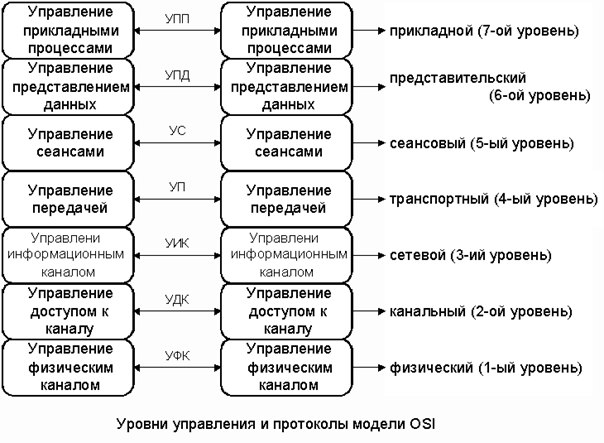 Согласно модели OSI архитектуру компьютерных сетей следует рассматривать на разных уровнях (общее число уровней - до семи). Самый верхний уровень - прикладной. На этом уровне пользователь взаимодействует с вычислительной системой. Caмый нижний уровень - физический. Он обеспечивает обмен сигналами между устройствами. Обмен данными в системах связи происходит путем их перемещения с верхнего уровня на нижний, затем транспортировки и, наконец, обратным воспроизведением на компьютере клиента в результате перемещения с нижнего уровня на верхний.