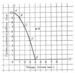 4. Два продукта, т.е. экономика производит не бесчисленное количество товаров, как это есть на самом деле, а всего два.