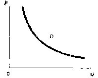 На оси ординат откладывают цены Р, на оси ординат — объем покупок Q. Кривая D отражает обратную зависимость между спросом и ценой и поэтому имеет вид нисходящей кривой с отрицательным наклоном.