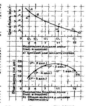 Если спрос эластичен, как, например, на отрезке от 5 до 4 дол. на рисунке А, то коэффициент эластичности выше 1 и изменение цены приведет к изменению суммы общей выручки в противоположном направлении. И наоборот, если спрос неэластичен, как на ценовом отрезке от 2 до 1 дол. на рис. А, цена и общая выручка будут изменяться в одном и том же направлении.