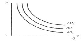 4) увеличение расходов на чистый экспорт, вызванное неценовыми факторами, приводит к росту совокупного спроса и сдвигу кривой AD вправо. Факторами, обусловливающими такую ситуацию, могут быть рост национального дохода иностранных государств, обесценивание отечественной валюты по отношению к другой, которое будет означать относительно более дешевый экспорт и более дорогой импорт товаров и наоборот.