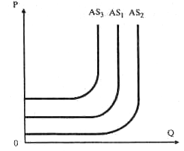 Равновесие можно рассматривать на трех участках кривой AS: горизонтальном, промежуточном и вертикальном.