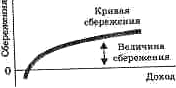 сбережение, т.е. семьи или государство живут в долг или используют предшествующие сбережения. Величина сбережения определяется расстоянием от оси X до кривой сбережения.