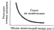 Связь между реальной ставкой процента и объемом инвестиций называется инвестиционной функцией. Она имеет убывающий характер: чем выше норма процентной ставки, тем ниже уровень инвестиций. Математически эту функцию можно записать так: