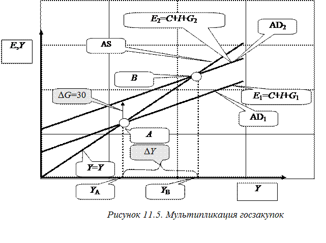 Если D I =30 млрд руб, то D Y =30*5=150 млрд руб