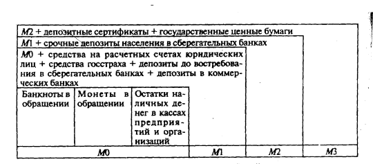Таким образом, деньги образованы несколькими составляющими, так называемыми денежными агрегатами: М0, М1, М2, М3 (рис. 13.1).