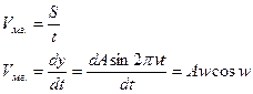 Зная, что скорость является первой производной пути по времени, а ускорение – второй, получим выражения для скорости и ускорения при гармонических колебаниях. Скорость при гармонических колебаниях:
