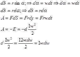 Тело вращается относительно оси О и имеет момент инерции J. Приложена сила F с плечом r (рис.11). Определим угловое ускорение β. За время dt тело с угловой скоростью ω поворачивается на угол