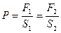 Давление жидкости, в соответствии с законом Паскаля, во всех точках сосуда одинакова.