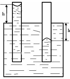 . Не смачиваемая жидкость опускается в капилляре на некоторую высоту, чтобы скомпенсировать действие добавочного давления. Высота поднятия смачивающей жидкости в капилляре определяется по формуле: