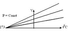 При постоянном давлении объем газа изменяется линейно с температурой (рис.23).