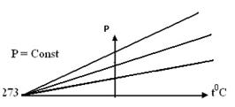 При постоянном объеме давление газа изменяется линейно с температурой (рис.24).