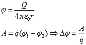 Рассмотрим какую работу совершает электрического поля, перемещая единичный точечный заряд, помещенный в какую либо точку этого поля.