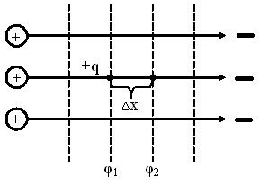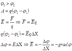 Пусть электрическое поле, направленное как показано на рисунке 37, перемещает заряд q из одной точки поля в другую. Запишем выражение для работы, которую при этом совершает поле и получим связь напряженности и потенциала.