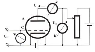 Лампа триод содержит три электрода – анод, катод и сетку(рис.51). Анодным током триода можно управлять напряжением на сетке, причем небольшим изменениям этого напряжения будут соответствовать значительные изменения анодного тока.