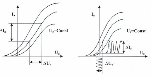 По этим характеристикам определяются внутреннее сопротивление лампы триода Ri и крутизна анодно-сеточной зависимости (S).