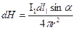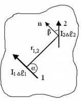 - угол между направляющей силой тока в этом проводнике и направлением на точку, в которой определяется напряженность.