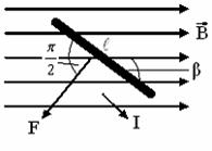 - угол между направлением силы тока в проводнике и вектором магнитной поле индукции.