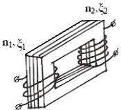 Ферромагнитный сердечник состоит из отдельных пластин, изолированных друг от друга, чтобы избежать вихревых токов.