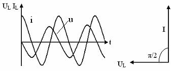 Колебания силы тока и напряжения на катушке индуктивности не совпадают по фазе, а отличаются на